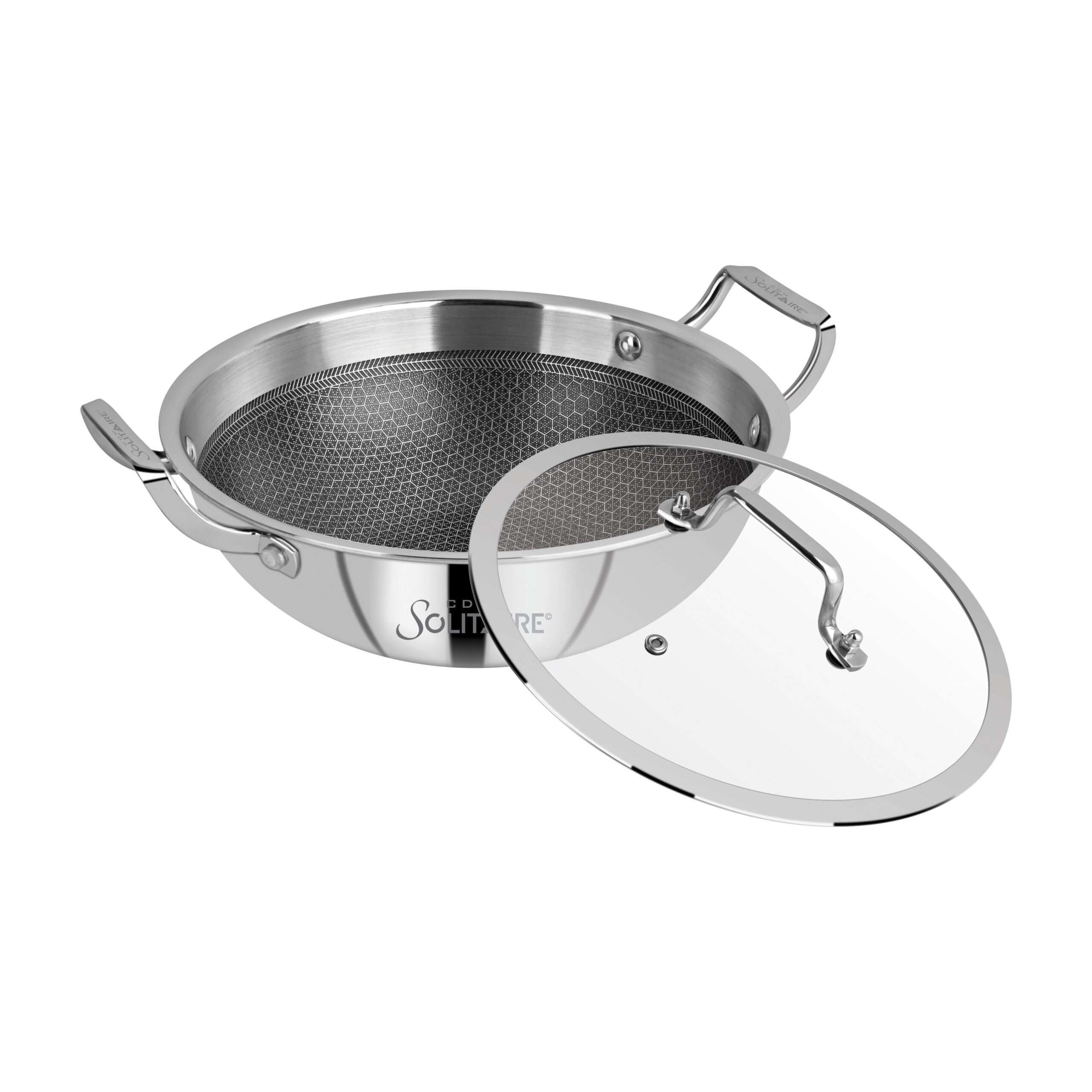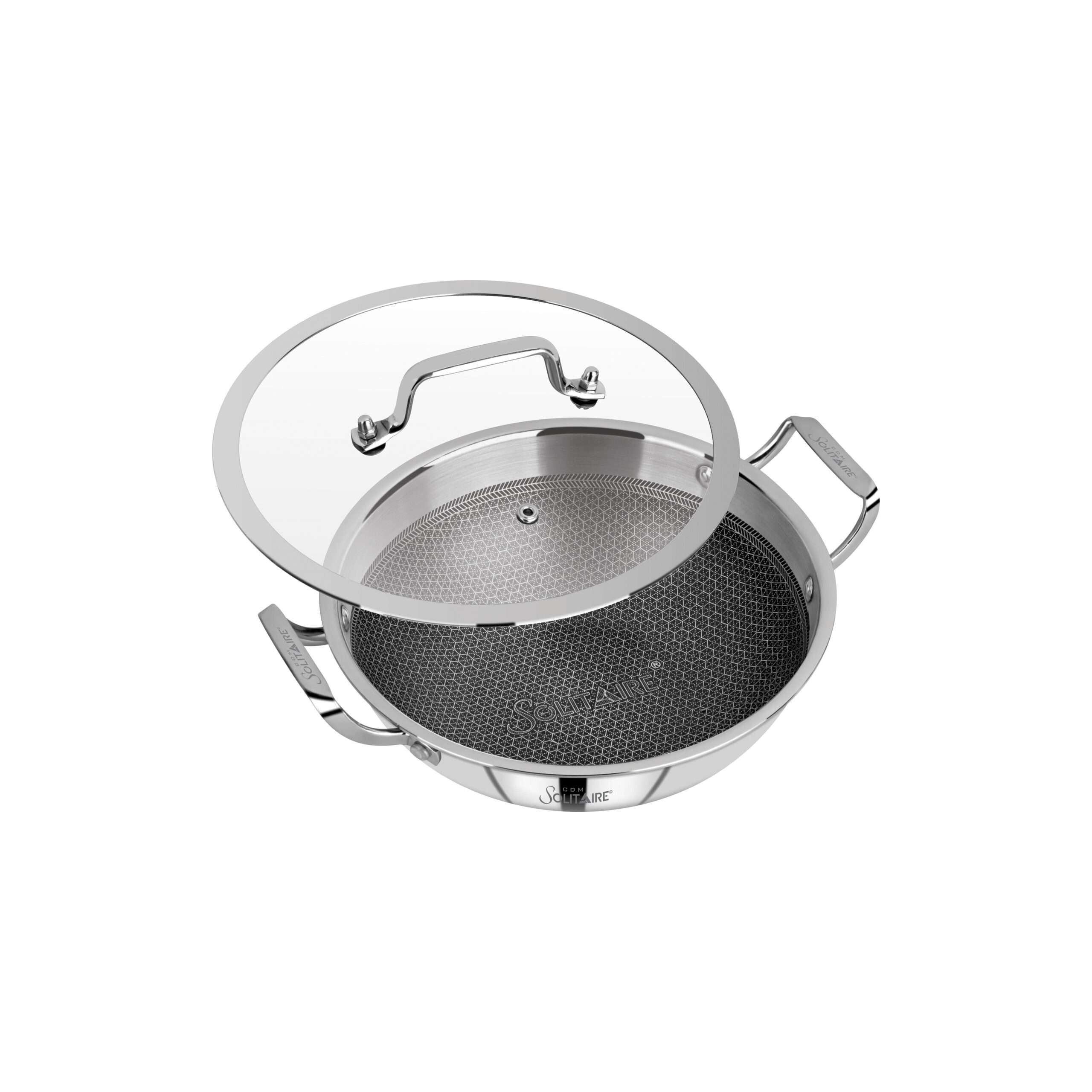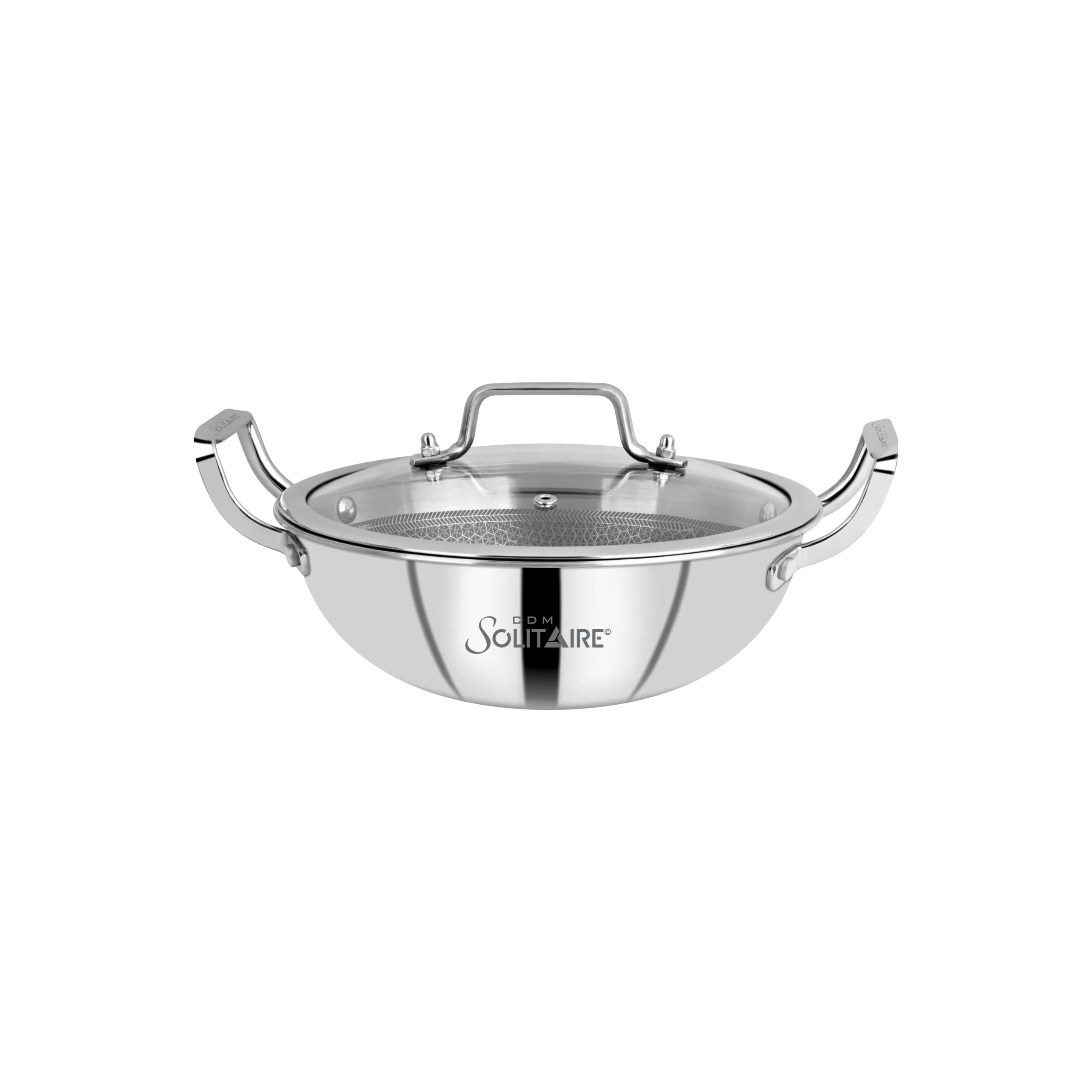 CDM Solitaire Triply Honeycomb Kadai with Glass Lid| Metal Spoon Friendly| Induction & Gas Stove Compatible